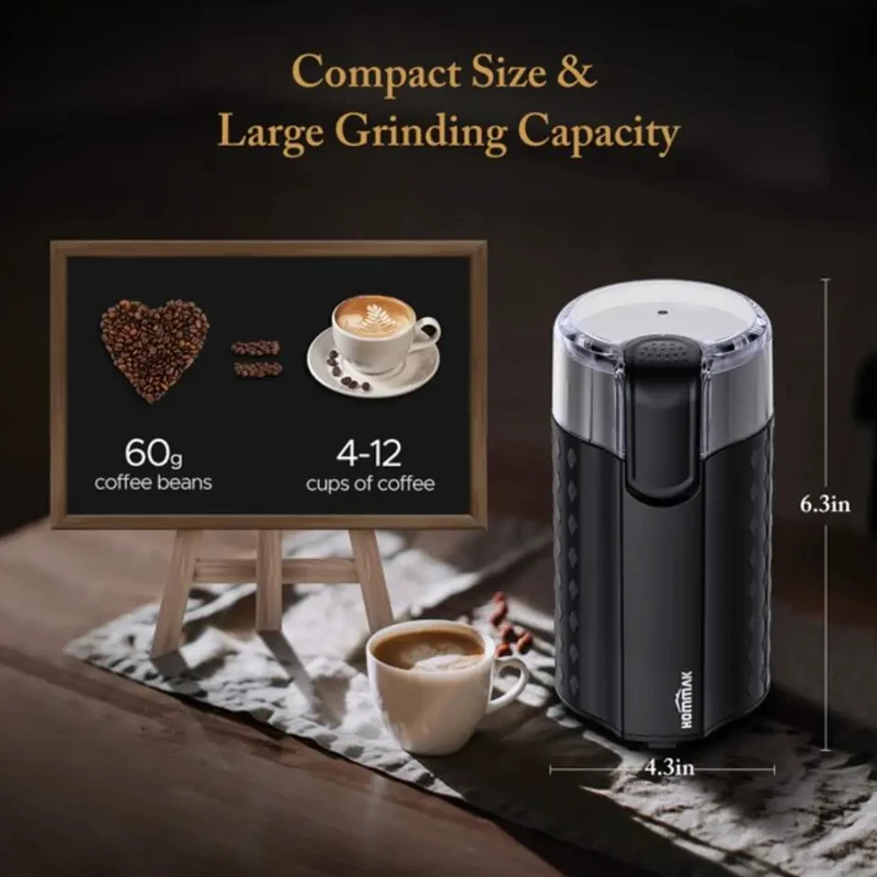آسیاب قهوه هوماک مدل HM645A با توان ۲۰۰ وات و تیغههای فولادی ضد زنگ، امکان آسیاب سریع و یکنواخت دانههای قهوه، ادویهجات، آجیل و گیاهان خشک را فراهم میکند. طراحی فشرده و سبک این دستگاه، آن را به گزینهای مناسب برای استفاده در منزل یا محل کار تبدیل کرده است.