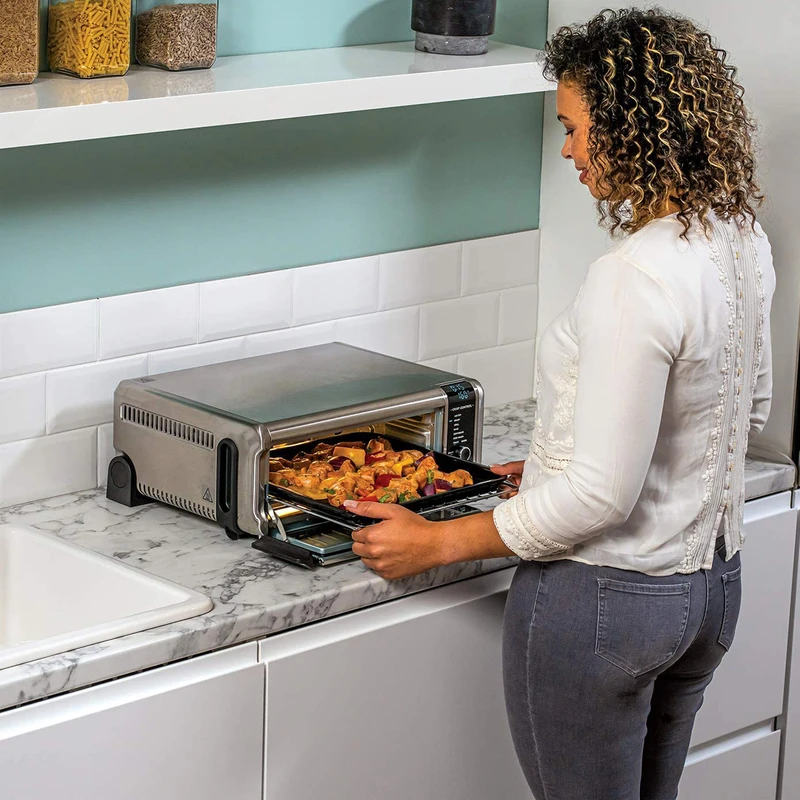 اگر به دنبال یک آون توستر حرفهای با طراحی شیک، امکانات پیشرفته و قابلیت چندمنظوره هستید، نینجا SP101 گزینهای عالی برای شماست. این دستگاه با طراحی باریک و امکان قرارگیری عمودی، برای فضاهای کوچک ایدهآل است و با امکاناتی مانند ایربیک، پخت سریع و مصرف بهینه انرژی، تجربهای بینظیر در پخت و پز خانگی فراهم میکند.