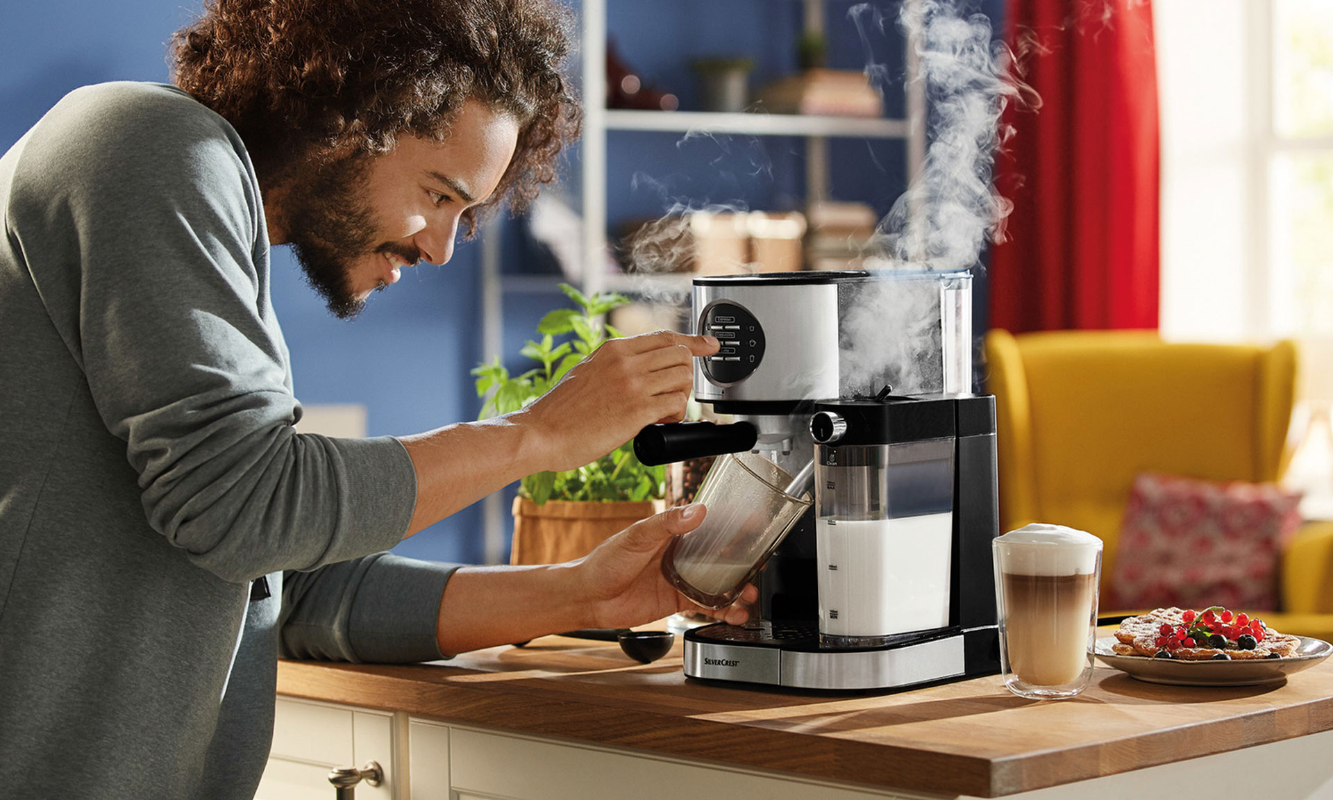 نازل بخار قدرتمند: امکان تهیه فوم شیر با کیفیت برای نوشیدنیهای مختلف مانند کاپوچینو و لاته ماکیاتو.