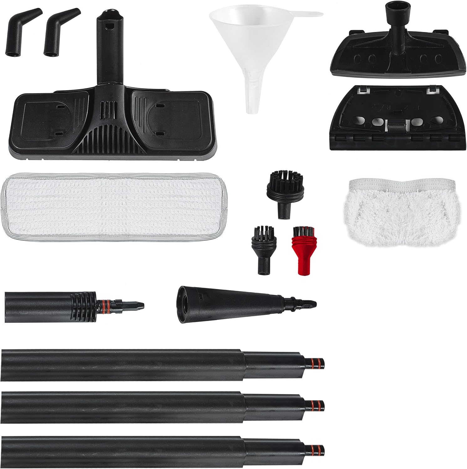 • لوازم جانبی متنوع: شامل برس کف، پارچه میکروفیبر، نازل‌های مختلف برای گوشه‌ها و سطوح مختلف.