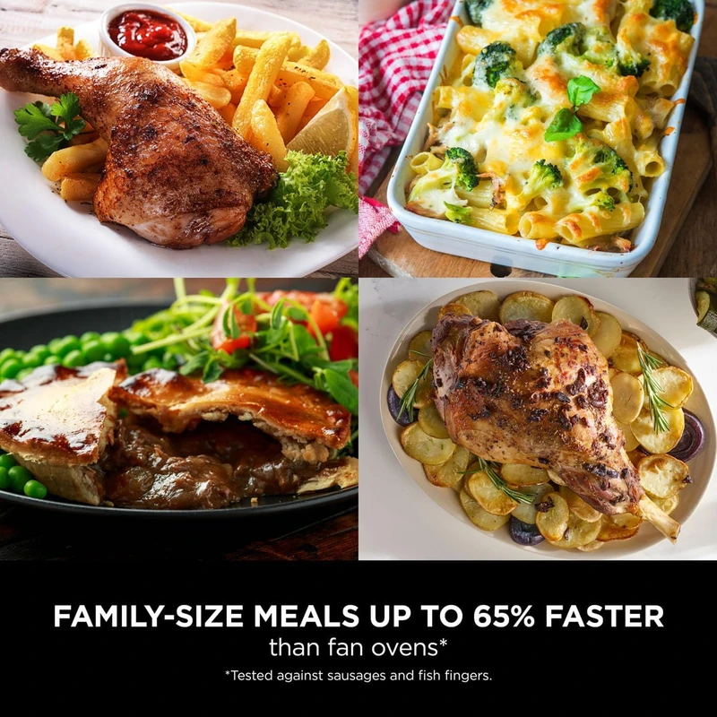 نینجا AF500 با بدنه مقاوم و طراحی ارگونومیک، علاوه بر زیبایی، دوام و کیفیت بالایی دارد. این مدل مجهز به سیستم کنترل دیجیتال و برنامه‌های از پیش تعیین‌شده است که فرآیند پخت را کاملاً هوشمندانه و یکنواخت انجام می‌دهد. همچنین دو محفظه جداگانه این امکان را می‌دهد که همزمان دو نوع غذا را بپزید و در زمان صرفه‌جویی کنید. قطعات قابل جدا شدن و قابلیت شستشو در ماشین ظرفشویی نیز تمیز کردن دستگاه را بسیار آسان کرده است.