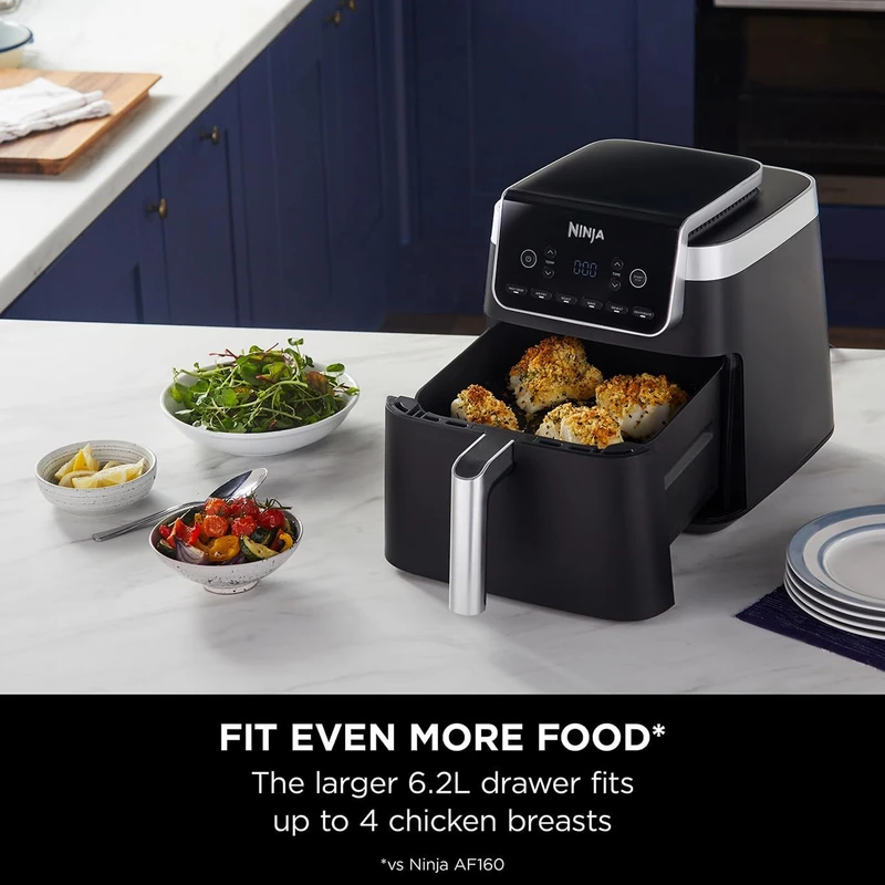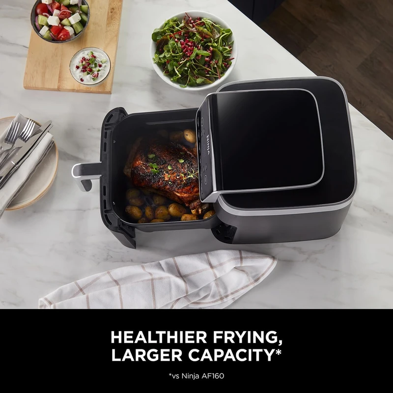 نینجا AF180 با بدنهای مقاوم و طراحی جمعوجور، علاوه بر زیبایی و استحکام، برای استفاده روزمره بسیار کاربردی است. این مدل دارای صفحه کنترل دیجیتال و چندین برنامه از پیش تعیینشده است که فرآیند پخت را آسان، سریع و یکنواخت میکند. ظرفیت مناسب دستگاه نیز آن را برای پخت وعدههای غذایی خانوادگی ایدهآل ساخته است. همچنین قطعات جداشدنی و قابل شستشو در ماشین ظرفشویی، تمیز کردن دستگاه را بسیار راحت میسازد.