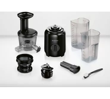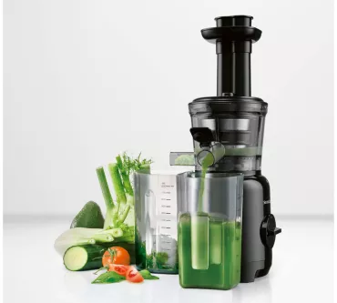 سیستم جداسازی هوشمند، تفاله و عصاره را از هم تفکیک میکند و مخزن جداگانه برای تفاله، کار را بسیار سادهتر میسازد. دهانه ورودی مناسب، امکان استفاده از قطعات درشت میوه را فراهم کرده و طراحی جمعوجور دستگاه باعث میشود در هر آشپزخانهای جای بگیرد. قطعات قابل شستوشو در ماشین ظرفشویی نیز نظافت دستگاه را بسیار آسان کرده است.
