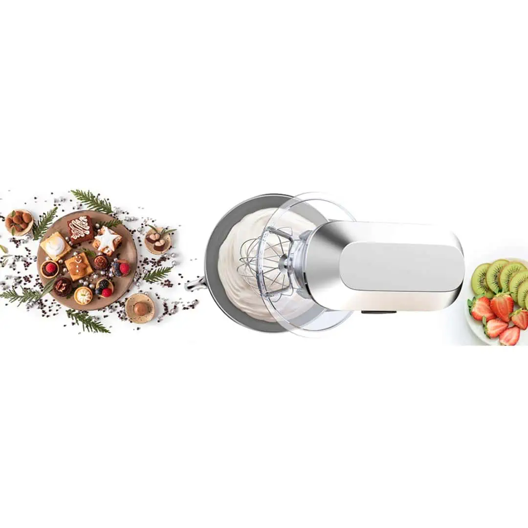 مدل SM-1553 به سریهای مختلف همزن، خمیرزن و سری بالنی مجهز است که امکان تهیه انواع ترکیبات غذایی را به راحتی فراهم میکند. ظرفیت کاسه مناسب (حدود 5 لیتر)، بدنه مقاوم و پایههای ضد لغزش، ایمنی و پایداری دستگاه را تضمین میکنند. طراحی جمعوجور و کمصدا بودن این همزن، استفاده از آن را در هر آشپزخانهای ساده و لذتبخش میکند.